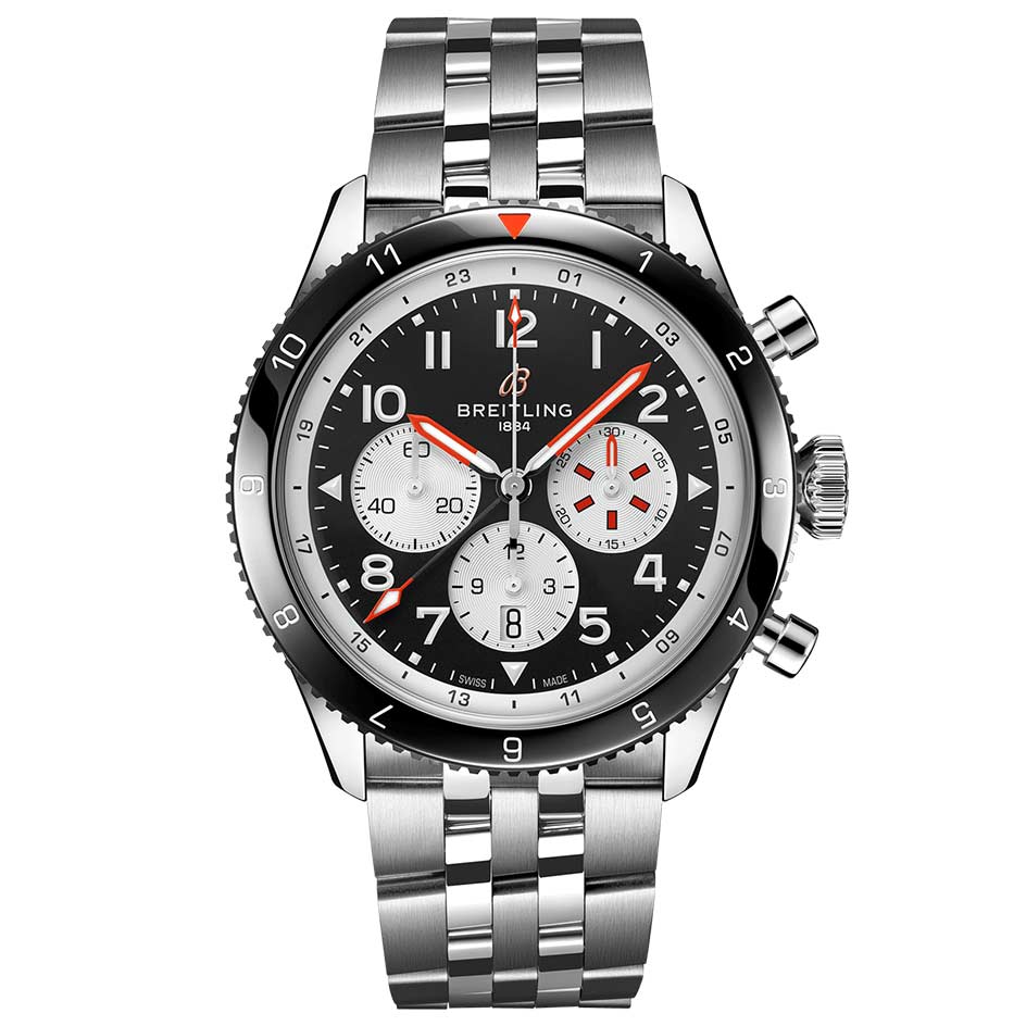 The Breitling Super AVI B04 Chronograph GMT 46 Mosquito YB04451A1B1A1 watch has an Automatic movement with 10 Bar (100 meters) of water resistance, Stainless Steel case material, Black dial color and bracelet with 70 Hours of power reserve.