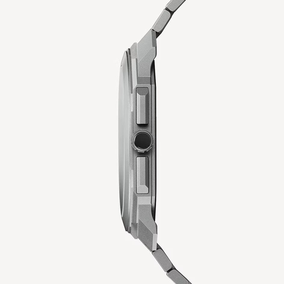 A perfect blend of technical sophistication and aesthetic refinement, the Octo Finissimo Chronograph GMT in sandblasted titanium is the world’s slimmest self-winding watch endowed with a chronograph and GMT function. For this Special Edition, the displays of the dial in matte grey sandblasted titanium replicate the very first Octo sketch by Fabrizio Buonamassa-Stigliani, Director of Bulgari's Watches Design Center, in a tribute to the bold spirit that marked the origins of the collection. Special Edition of 200 pieces.