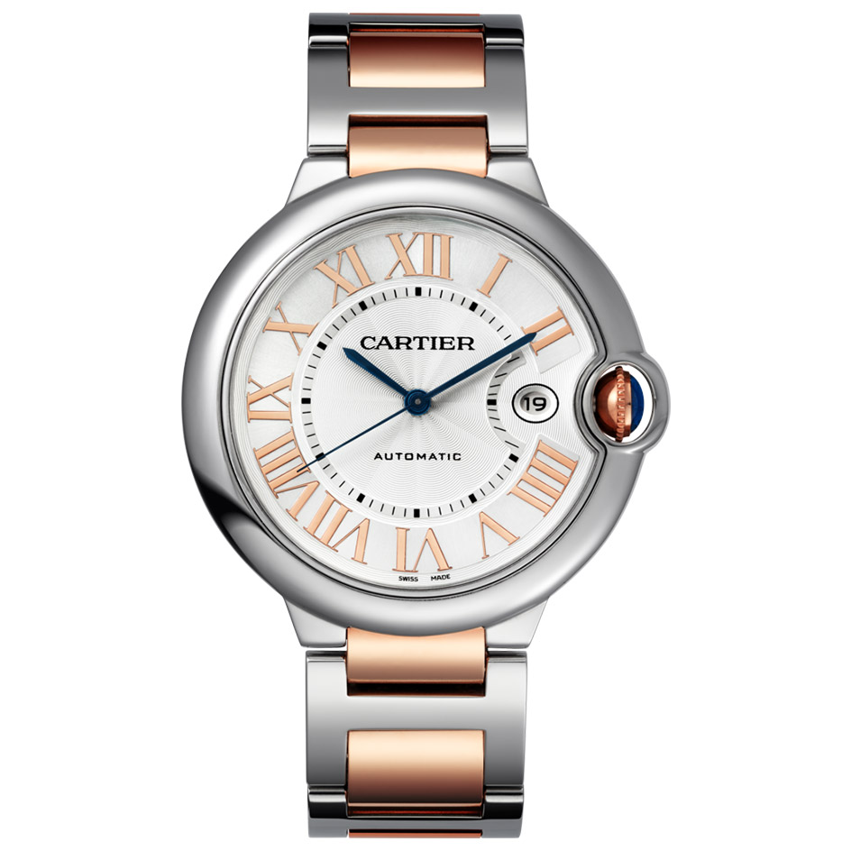 Cartier Ballon Bleu 42 W6920095 watch has an Automatic movement with 3 Bar (30 meters) of water resistance, Stainless Steel case material, Silver dial and Stainless Steel and Gold Bracelet with 38 Hours of power reserve.