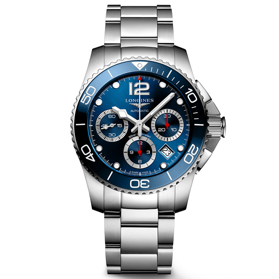 The Longines HydroConquest L3.783.4.96.6 has an automatic movement, Blue dial color, Stainless Steel with Ceramic case material and Stainless Steel bracelet with 60 Hours of power reserve.