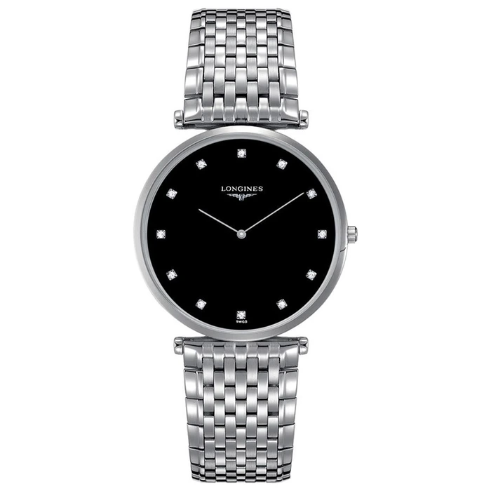 The La Grande Classique De Longines L4.766.4.58.6 has a quartz movement, 3 Bar (30 meters) of water resistance, Black dial color, Stainless Steel case material and Stainless Steel bracelet.