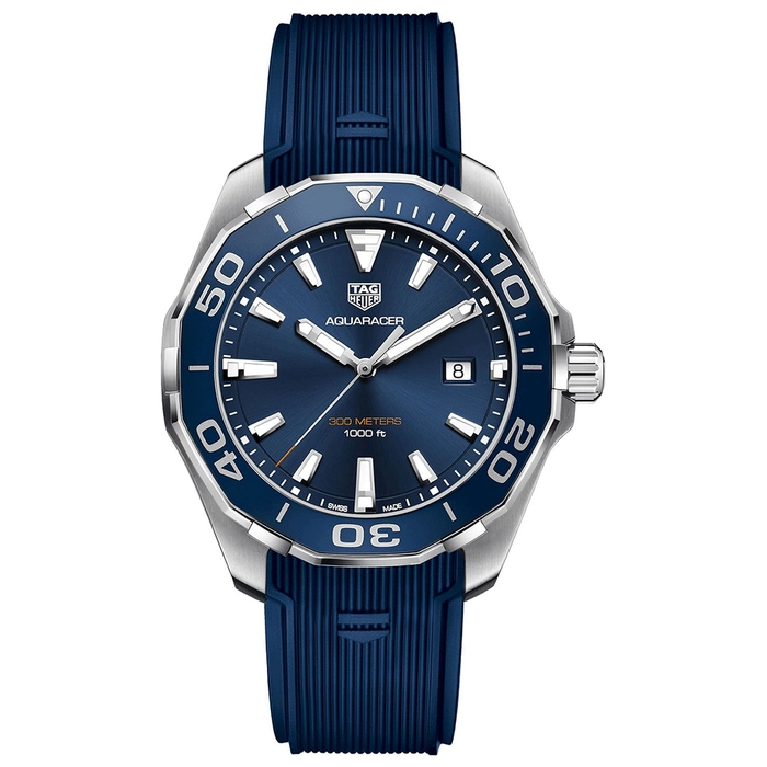 The Tag Heuer Aquaracer WAY101C.FT6153 comes with a Quartz movement with 30 Bar (300 meters) of water resistance, Stainless Steel case material, Rubber strap and Blue dial color.