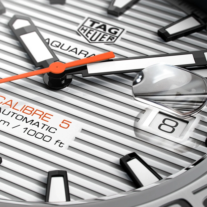 The Tag Heuer Aquaracer WAY2013.BA0927 comes with an automatic movement with 38 hours of power reserve, 30 Bar (300 meters) of water resistance, Stainless Steel case material, White dial color and a date window at 3 o'clock position.