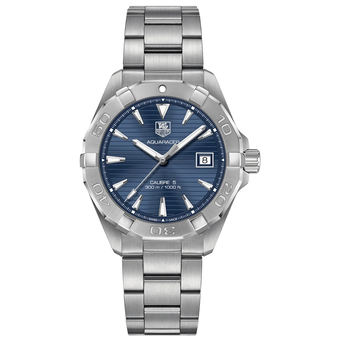 The Tag Heuer Aquaracer WAY2112.BA0928 comes with an automatic movement with 38 hours of power reserve, Blue dial color with an Automatic movement with 3 Bar (30 meters) of water resistance and Stainless Steel case material and bracelet and a date window at 3 o'clock position.