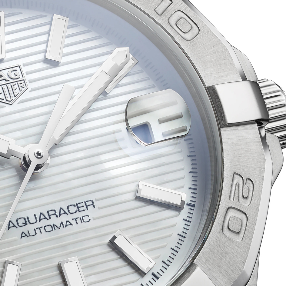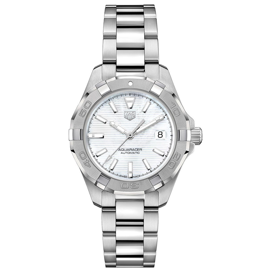 The Tag Heuer Aquaracer WBD2311.BA0740 comes with an Automatic movement with 30 Bar (300 meters) of water resistance, Stainless Steel case material, Steel bracelet and White Mother of Pearl dial color with 40 Hours of Power reserve.