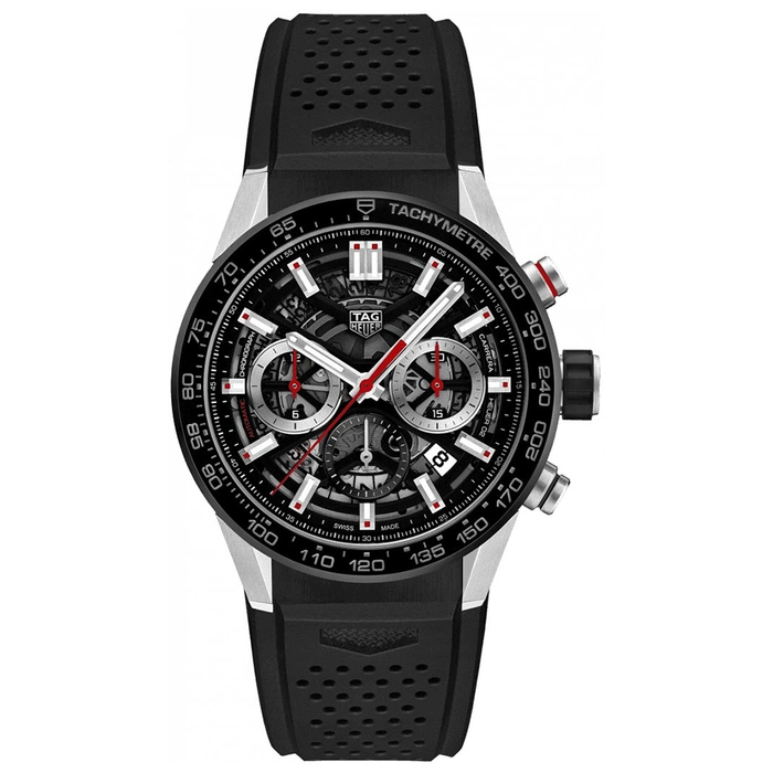 The Tag Heuer Carrera CBG2010.FT6143 comes with an Automatic movement with 10 Bar (100 meters) of water resistance, Stainless Steel and Ceramic case material, Rubber strap and Black dial color with 80 Hours of Power reserve.
