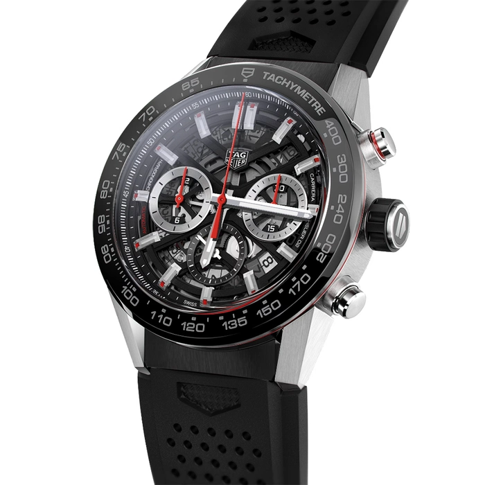 The Tag Heuer Carrera CBG2A10.FT6168 comes with an Automatic movement with 10 Bar (100 meters) of water resistance, Stainless Steel and Ceramic case material, Rubber strap and Black dial color with 80 Hours of Power reserve.