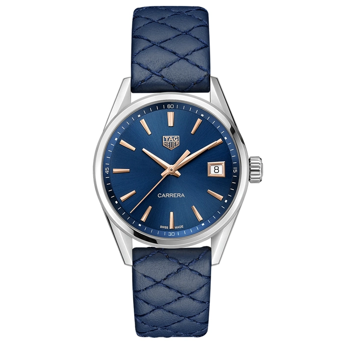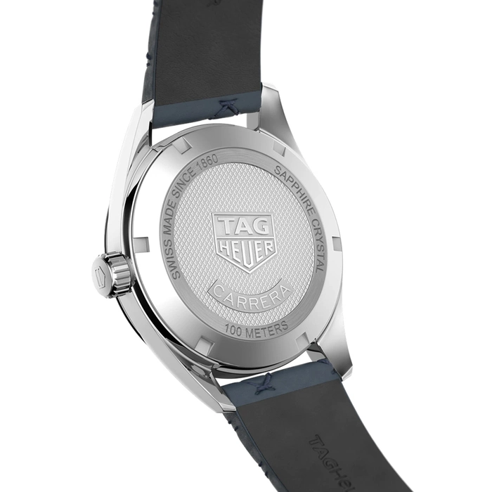 The Tag Heuer Carrera WBK1312.FC8259 comes with a Quartz movement with 10 Bar (100 meters) of water resistance, Stainless Steel case material, Leather strap and Blue dial color.