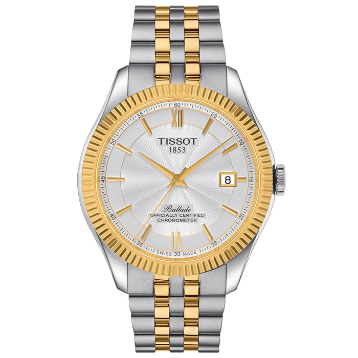 The Tissot Ballade Powermatic 80 Silicium T108.408.22.278.01 has an automatic movement, Silver dial color and Stainless Steel with Yellow Gold Plated case material & bracelet with 80 Hours of Power reserve.